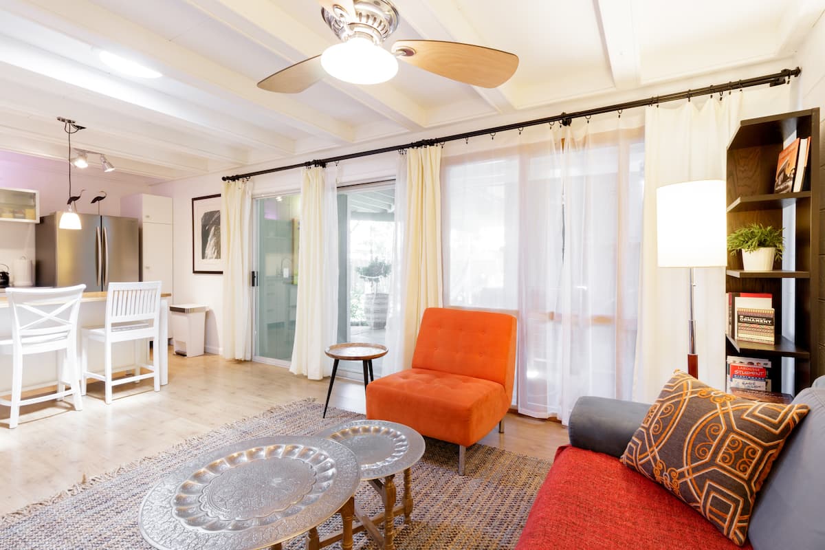 Only couples and solo travelers will want to look into this Airbnb Plus, as it only has one bedroom and a queen bed. There’s still plenty of space, though, with a colorful living room and a big kitchen that includes a gas oven, range, and fridge. You’ll also have access to a nice patio area and a backyard, where you can use the barbecue grill for outdoor cooking.