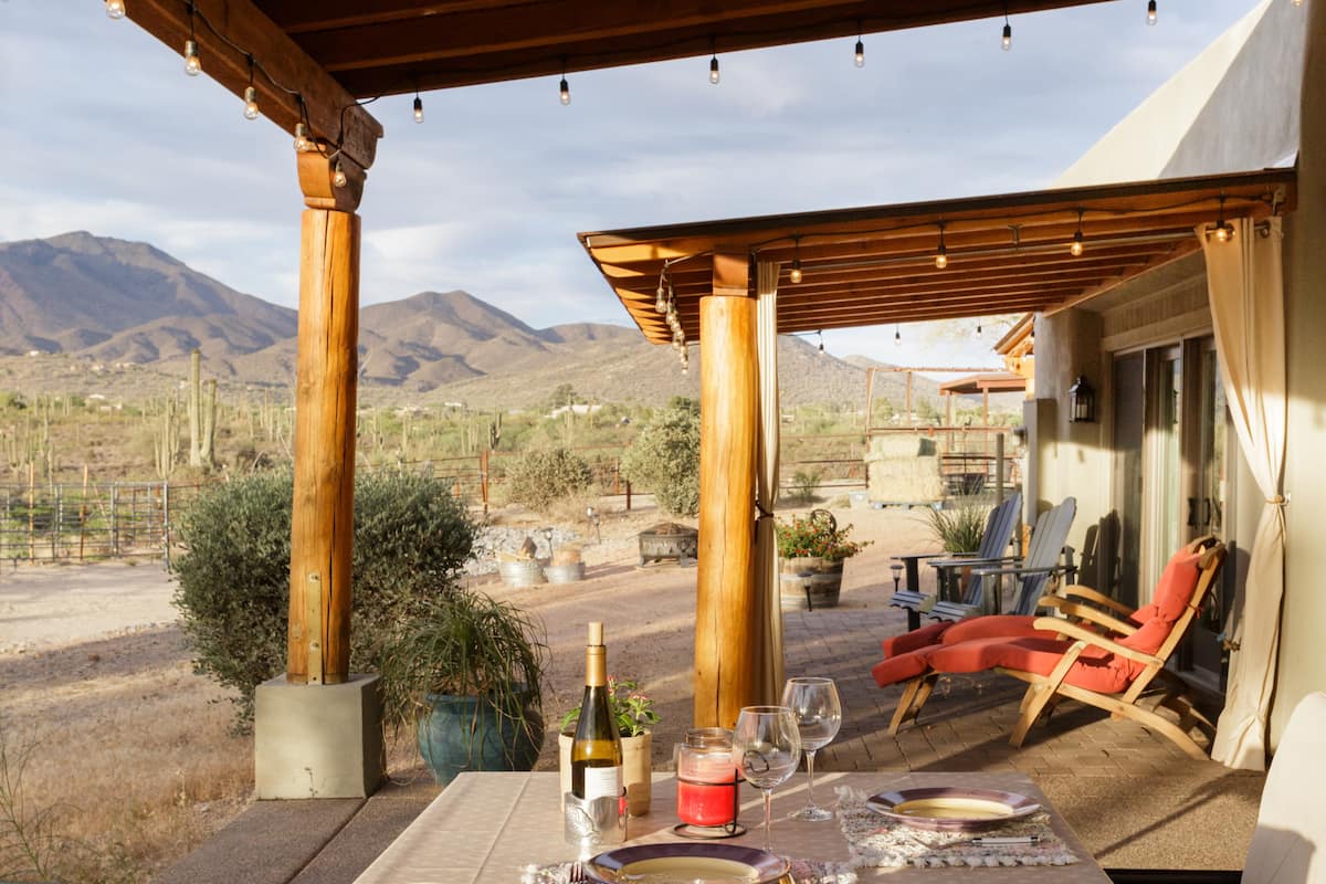 Few remote vacation rentals in Arizona sport such a stylish and homey feel as this Airbnb Plus. A stay in the desert often means roughing it, but with the air conditioning, room-darkening shades, and indoor fireplace, you’re sure to be comfortable here. With a studio layout and a queen-size pillow-top mattress, the suite can sleep two guests. It’s quite compact inside, but part of the appeal is spending time on the porch or the wraparound terrace, admiring the desert and mountain views with a glass of wine.