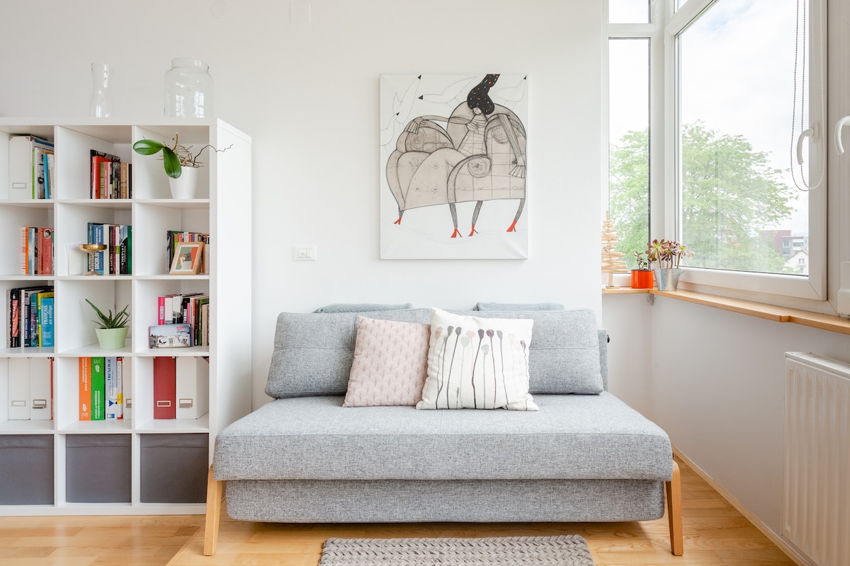 This relaxing abode is set in a very quiet neighborhood with a lot of green spaces, making it one of the best Airbnb rentals in Ljubljana for a tranquil retreat. With public transportation, shops, and local eateries all just a short walk away, the apartment is also convenient and well connected.