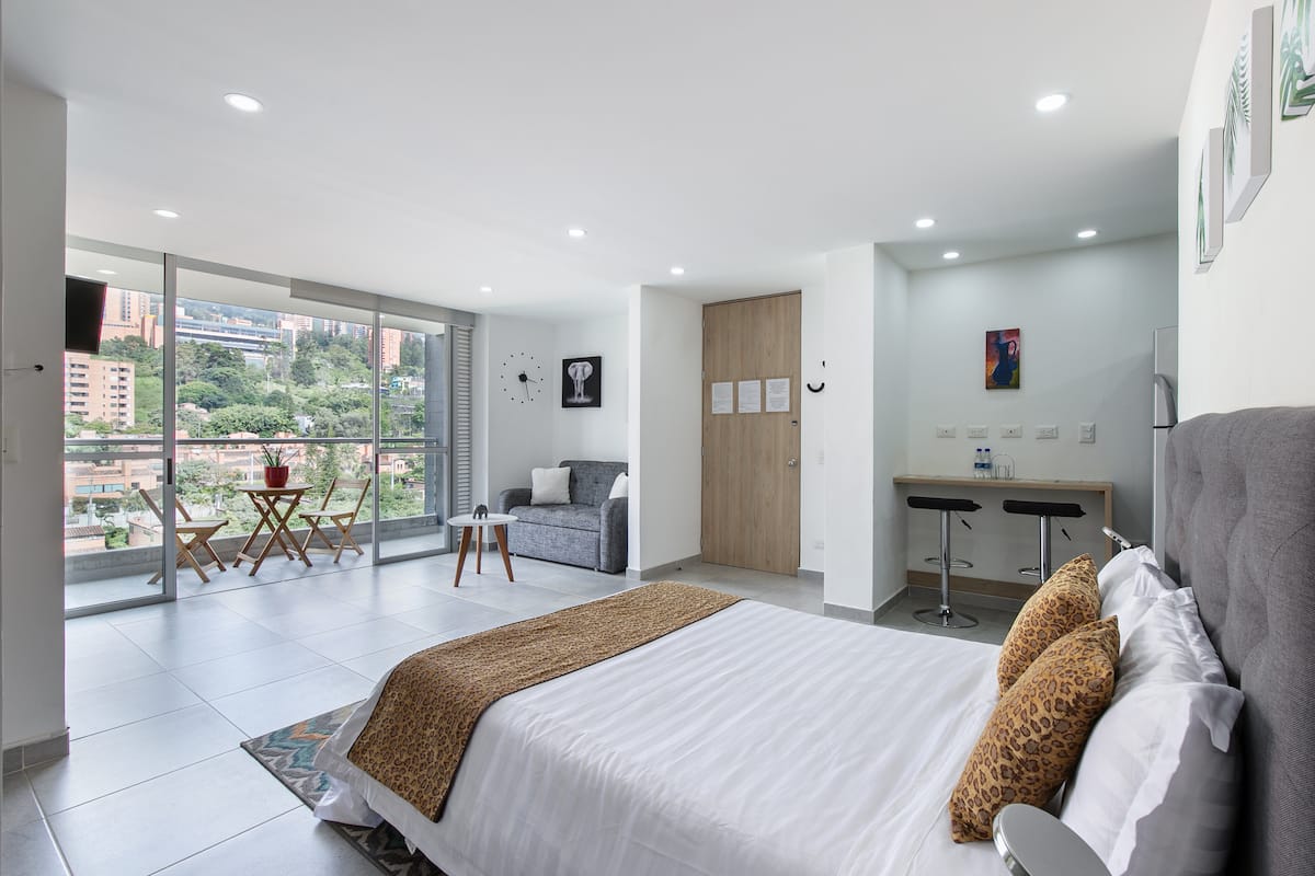 This beautiful studio is perfect for couples or solo travelers looking to rent an apartment in Medellin that is away from the crowds and busy street noises.