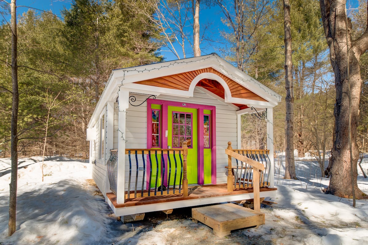 To try something new, consider a getaway in this curiously designed tiny house. It’s in the town of Pownal in the southwest corner of Vermont, a short drive from the larger Williamstown in Massachusetts – where you have dining options, places to get coffee, and several art museums to visit.