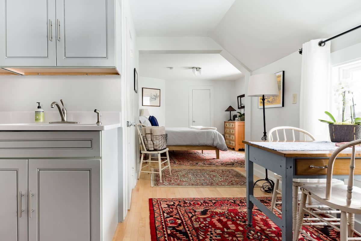 This Airbnb Plus has a studio layout and only enough sleeping space for two guests, but it feels more cozy than confined. In fact, it excels at comfort, with a memory foam mattress on the queen bed, a white noise machine, and air conditioning. Another convenience is the breakfast table and full kitchen with a stove, oven, and fridge, meaning you can self-cater during your stay.