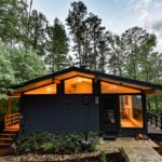Last but certainly not least is a stunning Airbnb in Charlotte, North Carolina, custom-built for dreamers and travelers in need of a peaceful escape. Forest green accent walls and log details create a cozy atmosphere that complements the property’s stunning scenery. One or two guests can stay in the treehouse, which offers a modern kitchenette and a queen-size bed. There is also a half bathroom inside of the home and a private outdoor shower with hot water. Guests have exclusive access to the entire property, including a private pond, a firepit, and a spacious furnished patio. Underneath the treehouse, you’ll find a queen-size swinging bed for those interested in relaxing in the incredible natural scenery.